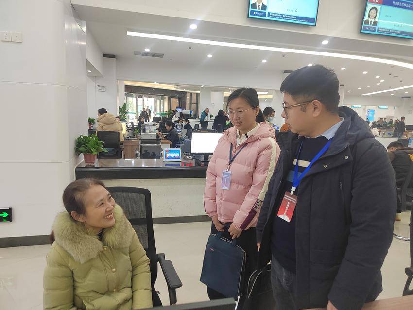 襄阳市襄州区实行县级纪委监委派出机构全部集中办公后,各派出机构之间强化协作,提高了监督效能。图为襄州区纪委监委派出第三纪检监察组、第五纪检监察组干部联合赴区政务服务大厅与办事群众沟通,了解养老社保领域“职工退休一件事”改革、政务服务优化情况,听取群众意见建议。(襄阳市襄州区纪委监委供图 )